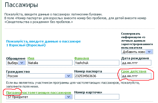 Вначале все нормально, вижу дешевый тип билетов «Polly» (ну да, покупается с поражением в правах, фиг сдашь и все-такое, ну ладно) — атакую его, ибо и так почти тыщ 60 набегает. Раза с третьего (ибо тупая система не додумалась запоминать даты вылета-прилета, и даже не давала ввести их вручную — только через гламурный календарь), дохожу до глухого рубежа обороны. Форма ввода на шесть персон.